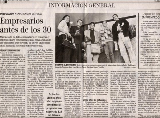 de EL TIEMPO: "Innovación- Empresarios antes de los 30"