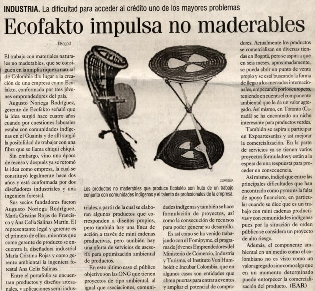 de proyecto Ecofondo: “Determinación de nuevos usos y aplicaciones para la fibra de chiqui -